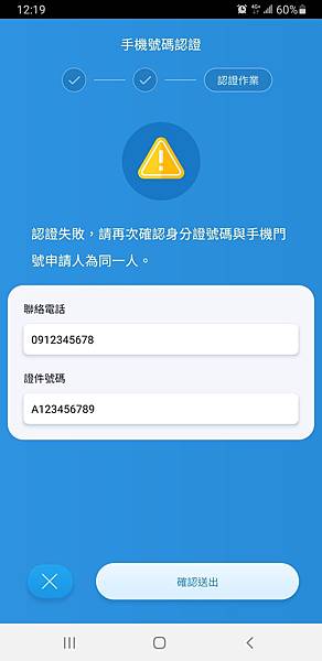 🔺出現「你所輸入的身分證號碼與中文姓名和所拍的身分證上顯示不同人,